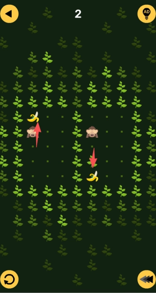 第三类关卡要求你同时操控两个角色,操作过程中要兼顾它们,保证两个角色都能吃到香蕉之类的目标物品。