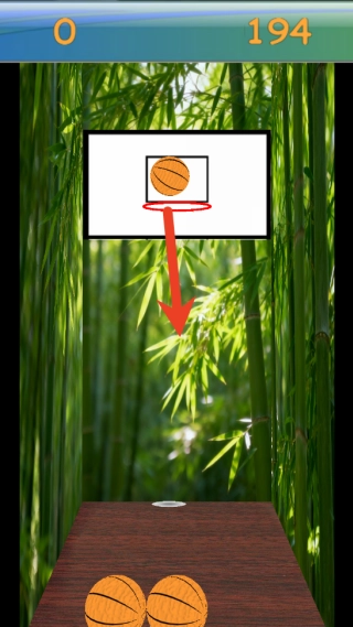 进入游戏后,玩家会置身于清新的竹林场景里,首先得点击屏幕上的篮球来准备投掷,这时候要留意观察篮筐的远近与位置,以便为后续的投篮操作做好准备。