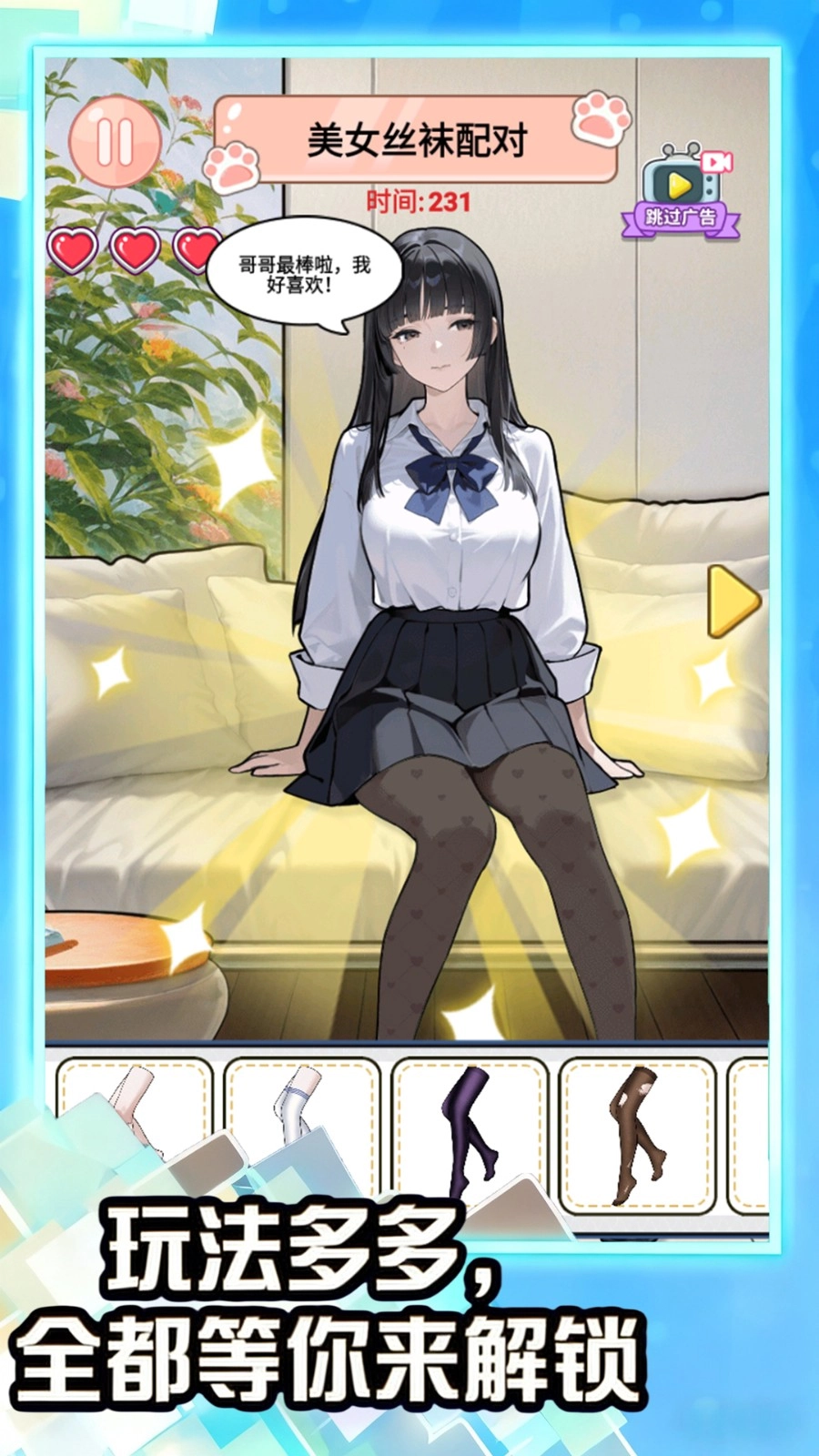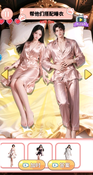 进入游戏后,解锁温馨居家场景,开启情侣睡衣搭配与找茬的双重任务。