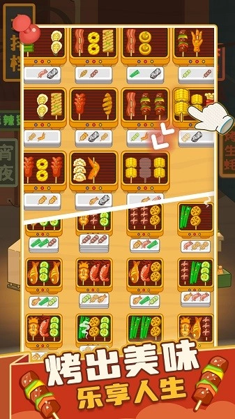 欢迎来到疯狂烧烤摊的美味天地,准备好在这场乐趣十足的烧烤狂欢中展现你的手艺了吗?在这里,你将化身烧烤摊的经营者,核心任务是把各式诱人的烤串完美摆放到盘中。只需将三根相同的烤串移动到一起,它们便会神奇消失,为你带来满满的收获与成就感。通过简单的拖动与点击,你就能轻松享受成为烧烤达人的经营之旅。