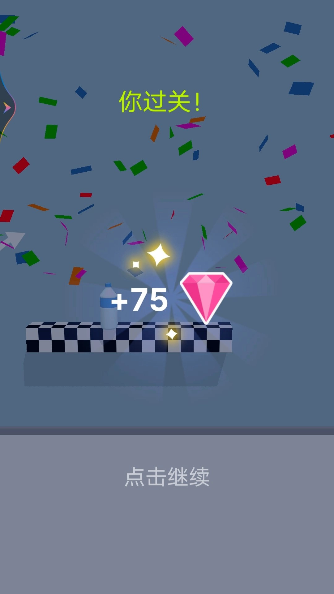 瓶子抵达终点后,你就能获得钻石奖励,还能解锁全新关卡,进入新地图自由跳跃。