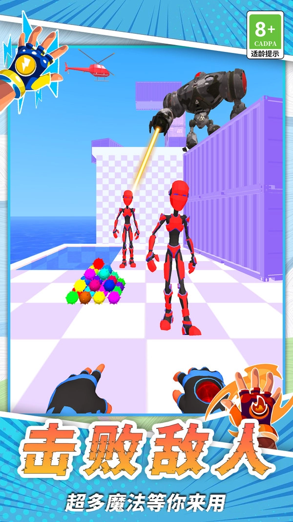 游戏采用极简的滑动操作机制,玩家可自由释放各类魔法技能,只需精准命中所有敌人,就能轻松完成战斗挑战。