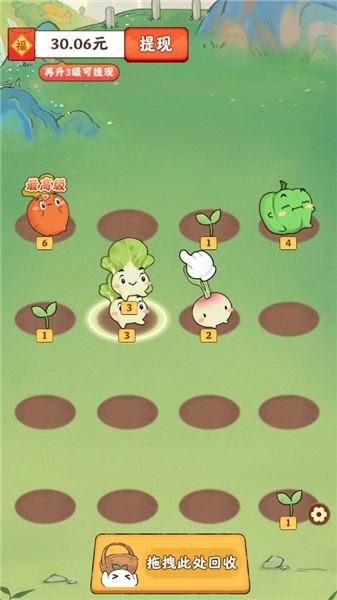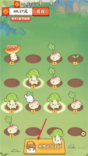 2、拖动相同的作物重叠在一起即可合成,获得更高一级的作物。