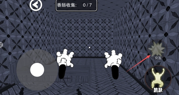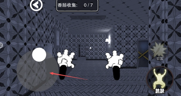 可以通过左侧的移动操控区域来控制角色移动,行进路线需要依据场景布局和香肠的位置进行灵活调整。