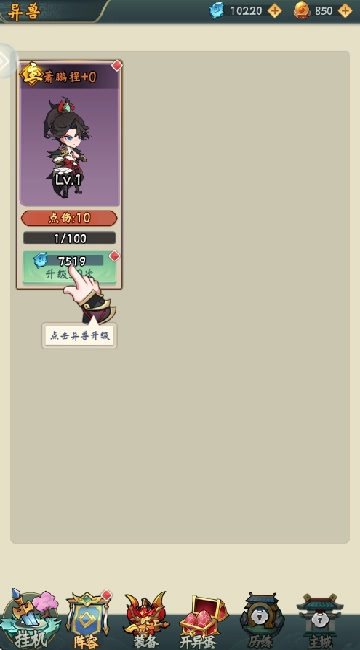 现在开启第一关的挑战啦,只要持续手动点击屏幕,角色就会自动攻击怪物。