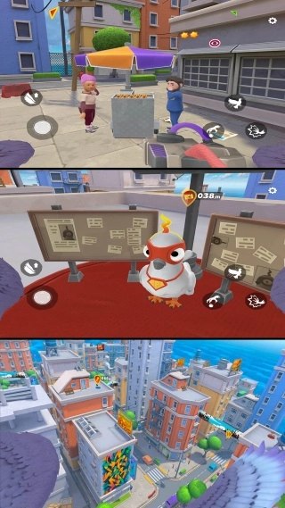 按照指引完成一些简单的捣蛋小任务,像从行人头顶快速掠过、降落在餐盘上,慢慢学会和城市里的各种元素互动,还能积累到最初的奖励。