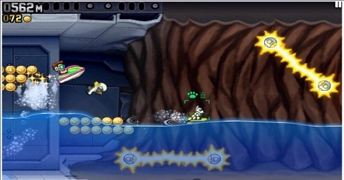 节奏会随着飞行距离的增加和速度的提升持续加快,障碍物与敌人的出现频率和复杂程度也同步升级,这对玩家的瞬间反应能力和操作预判能力提出了极高的要求。2、这款游戏创新性地融合了横版跑酷与飞行射击两种玩法。玩家需要同时在三维空间中进行机动躲避(上下飞行),并在二维平面上完成精准射击,需要一心二用。3、玩家通过挑战关卡赚取金币,这些金币可用于购买造型多样的喷气背包、千奇百怪的服装以及威力强劲的武器。解锁新装备不仅能提升战斗能力,还能改变角色的外观。