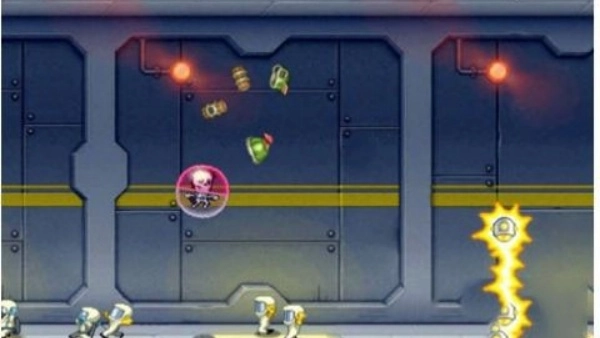 在《火箭飞人冒险》里,你会化身勇敢的主角巴里,背上实验性火箭背包,开启一场极限逃亡之旅!这是一款融合横版飞行跑酷与动作射击元素的快节奏游戏。你只需单手点击屏幕,就能操控角色在高速飞行时灵活升降,避开扑面而来的激光、电网以及层层障碍。