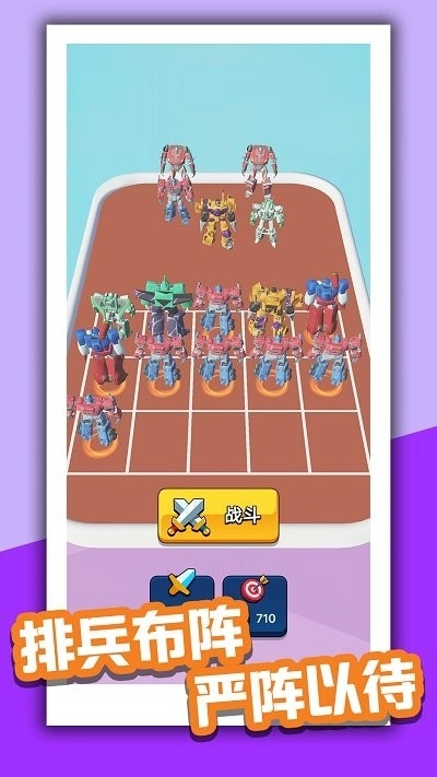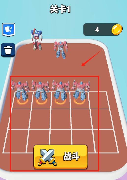 挑选五个粉蓝机器人来激活橙色光环,接着点击战斗按钮,和前来阻拦的敌人进行对战。