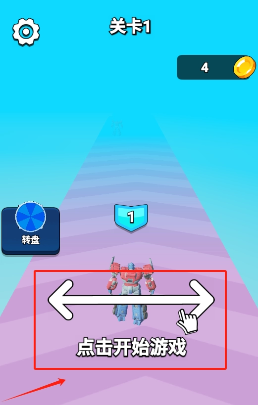 点击转盘挑选装备,组合红蓝机器人构建战斗阵容,点击开始游戏进入相应关卡。