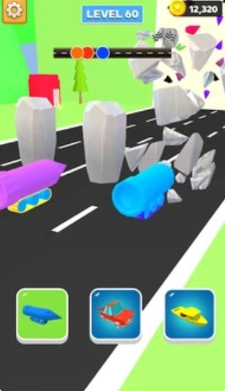 游戏内设有多种风格迥异的赛道,每条赛道都具备独特的地形构造与障碍物设计。玩家需灵活调整赛车的形态与行进速度,巧妙规避各类障碍,从而顺利完成相应任务。