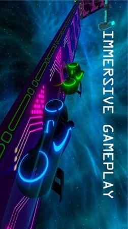 和以往的真实摩托游戏不同,这款游戏具有非常强烈的未来科幻感,玩家可以感受银河摩托车的性能,驾驶摩托一路向前,超越对手。