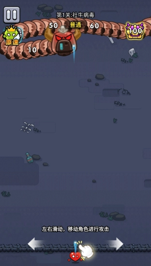 1、进入游戏后,玩家只需按住角色并左右滑动屏幕,即可操控人物移动与射击,操作简便却富有节奏感。