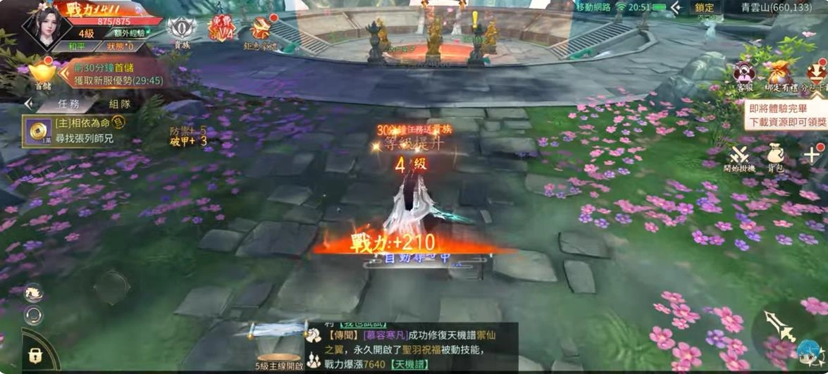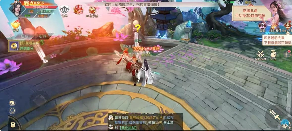 3、仙侣系统与社交玩法十分丰富,玩家可以在这里结识志同道合的朋友、组建属于自己的仙盟,还能参与仙侣专属副本和情缘任务。创建角色,选择职业后完成新手试炼任务。