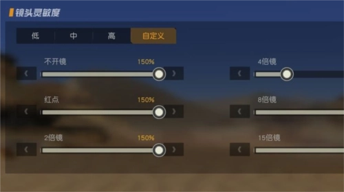 2、灵敏的的设置是分好几种种类的,第一种是镜头的灵敏度设置,在游戏里面镜头的灵敏度是指有倍镜和没有倍镜的情况。