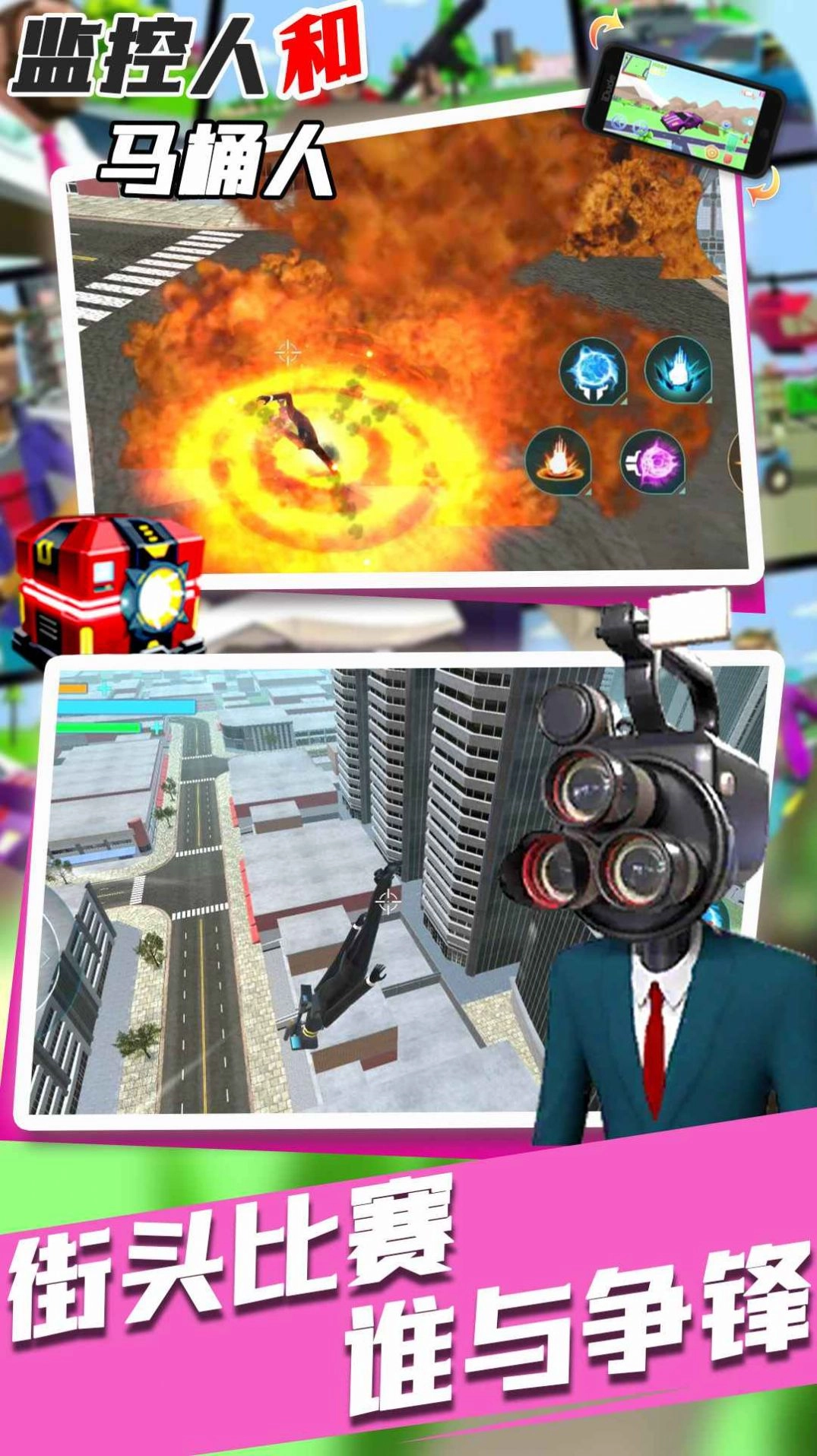 监控人和马桶人是一个城市格斗类游戏,在游戏里面有两种人可以去选择,一种是马桶人另外一种是监控人,各有各的的技能和厉害之处,需要在城市里面进行打斗,战场都非常的激烈,谁能将对方消灭掉谁就可以成为城市的霸主,画质比较的真实,玩法很自由。