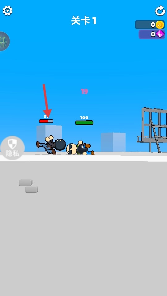 2、在“关卡1”中,操控拿着铁球的角色行动。