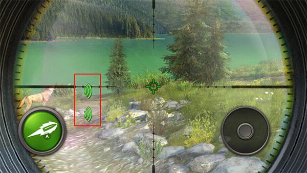 2、直接开启狩猎环节,玩家能借助喇叭的声响来判别猎物的方位,右侧操作栏允许左右滑动操作,左侧对应射击功能,中间则是瞄准功能。