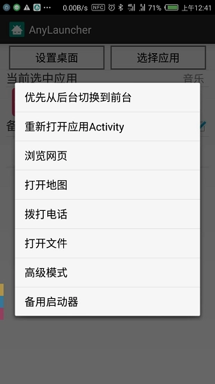 打开>选择工作模式、参数、待锁定的应用->按下home键->(如果弹出选择启动器的界面)选中AnyLauncher。如果没有弹出,需要在系统里手动设置。目前很多Launcher都没有解决国产Rom的这个问题。