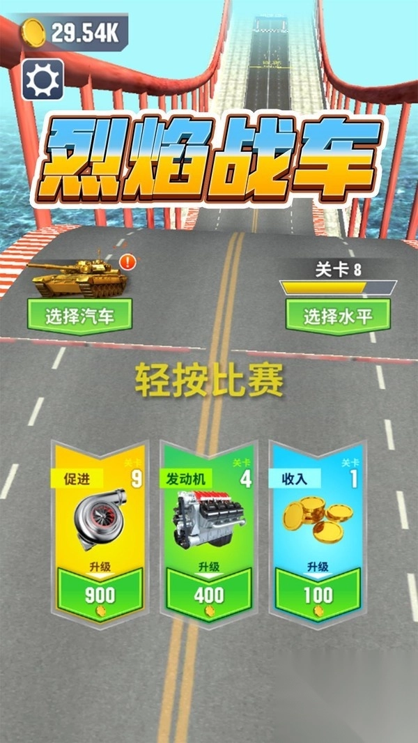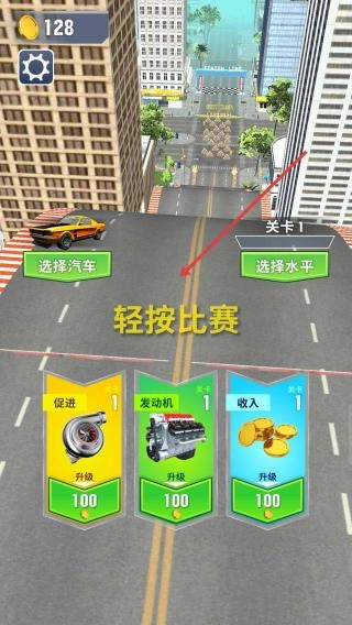在主界面点击【轻按比赛】选项,接着选择【关卡1】以及对应的难度水平,随后即可开启城市赛道的竞速挑战。
