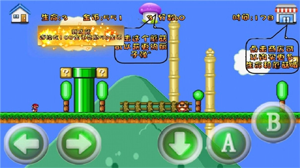 超级玛丽旗舰是一款非常好玩的冒险闯关游戏,游戏里的每个关卡都是不同的,玩家通过虚拟摇杆按键指挥马里奥的行动,通过奔跑、跳跃、踩踏等动作越过障碍,击败或者回避敌人。