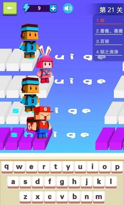 这是一款超有趣的休闲益智游戏,整体风格走Q萌卡通路线,操作简单易上手,玩起来乐趣满满。玩家需要根据游戏里出现的字母,快速且精准地输入对应的按键,这样游戏角色才能走得更远,顺利赢得胜利和丰厚奖励,还能解锁更多可爱角色。小人会在你输入的文字上方跳跃前进,快来帮他通关吧!打字速度越快,通关时间就越短,更高的分数正等着你去挑战呢。游戏内容十分丰富,画面细腻精致,玩法更是充满趣味。作为一款休闲游戏,“我打字贼快”能让玩家充分感受到游戏的快乐,轻松放松心情。