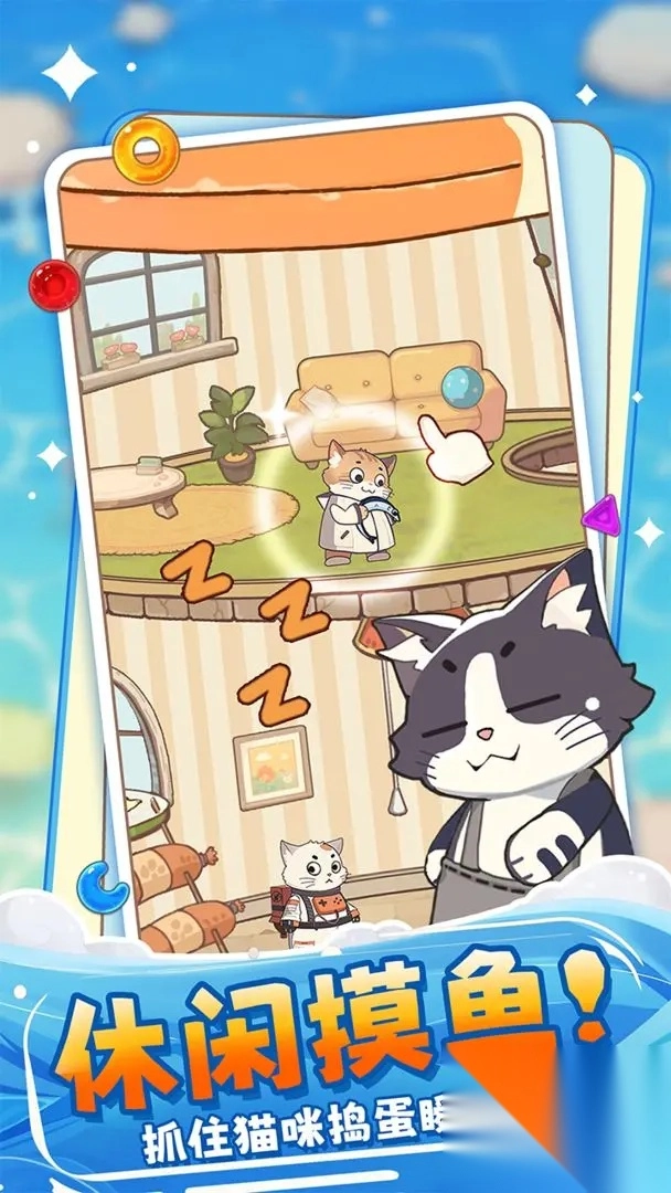 猫咪养成系统,在游戏里获取的小鱼干可解锁新的猫咪品种,每只猫咪都具备独特技能,能在关卡中为玩家提供助力。