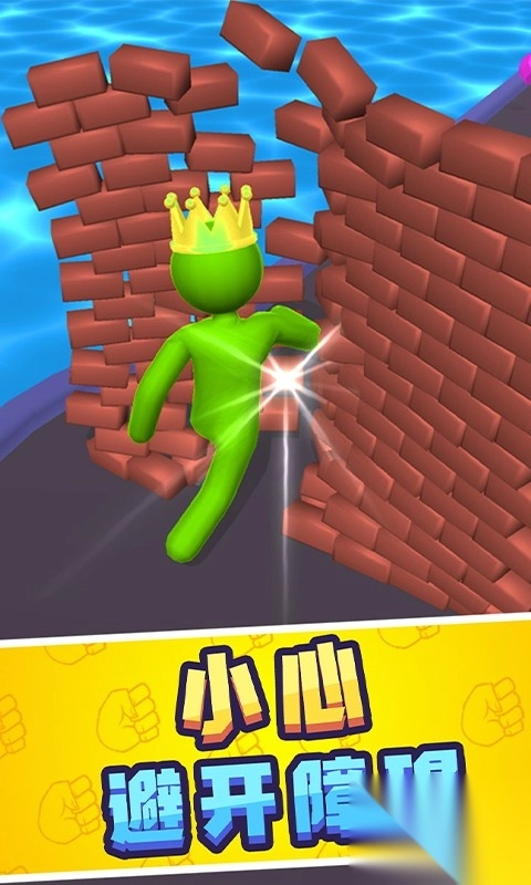 在奔跑过程中收集小人来壮大自己的队伍,当遇到砖墙之类的障碍时,就借助壮大后形成的巨人力量撞击并突破它们。