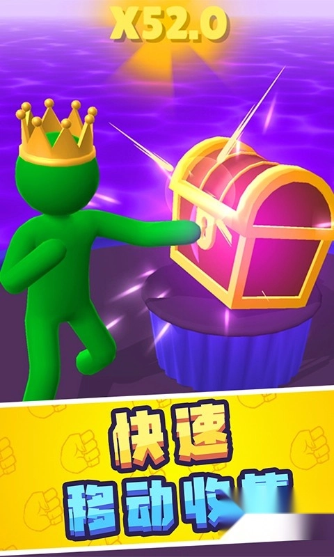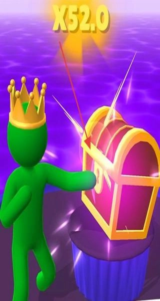 到达终点后开启宝箱,根据奔跑过程中积累的倍数(例如X52.0)来领取奖励,以此推动解锁新的关卡。