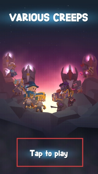 在主界面点击【Tap to play】按钮进入游戏,接着体验【VARIOUS CREEPS】的玩法,通过操控角色来开启这段冒险之旅。