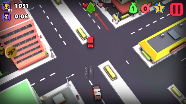 持续操控车辆躲避警车,拾取各类道具(比如火箭),以此延长追捕时长,从而刷取更高分数。