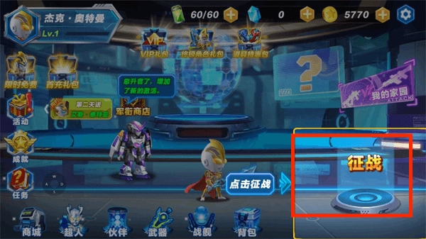 进入游戏后点击开始征战。