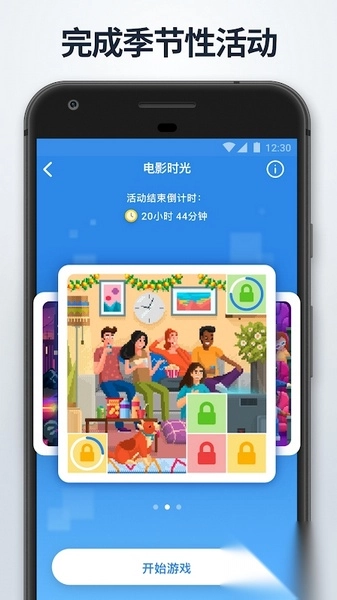 浏览季节性活动(像电影时光这类),留意倒计时,点击“开始”按钮,完成活动相关任务。