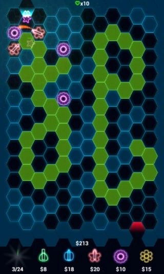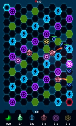 炫光塔防(hexdefense)是一款在android平台上广受欢迎的塔防类手机游戏。游戏以其独特的炫光风格、三维图像和立体声音效,为玩家带来了紧张激烈且视觉效果惊艳的游戏体验。在游戏中,玩家需要建设、升级迷宫塔,通过策略布局来阻止敌人的进攻,保卫蜂巢免受邪恶的病毒入侵。