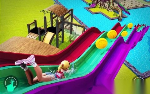 刚进入游戏,水上公园各式各样的滑道便映入眼帘,轻点屏幕挑选喜欢的赛道,滑动屏幕操控角色站上滑水板,准备开启这段冒险之旅。