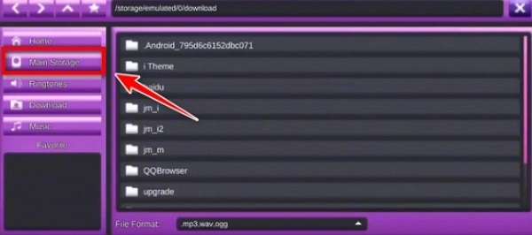 7、点击此处切换至手机根目录,接着找到你之前存放在手机里的音乐所在位置
