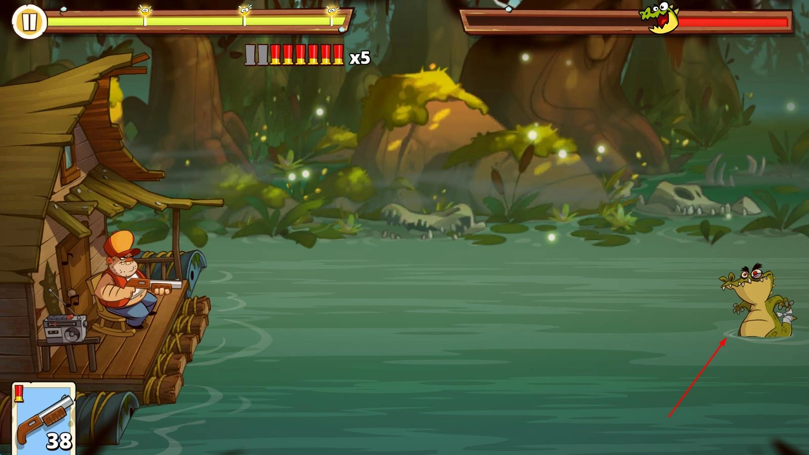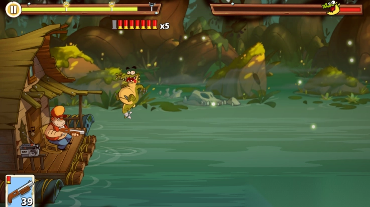 《沼泽激战II》延续了前作的卡通画风,同时升级了玩法机制,是一款策略与射击元素交融的塔防游戏。玩家将在湿地沼泽中扮演守护领地的防御者,以关卡挑战为核心目标,操控角色运用散弹枪、火焰喷射器等多种武器,配合炸弹等道具,在小屋前构筑防线,击退鳄鱼、变异生物等怪物的入侵,体验兼具策略布局与射击爽感的塔防乐趣。