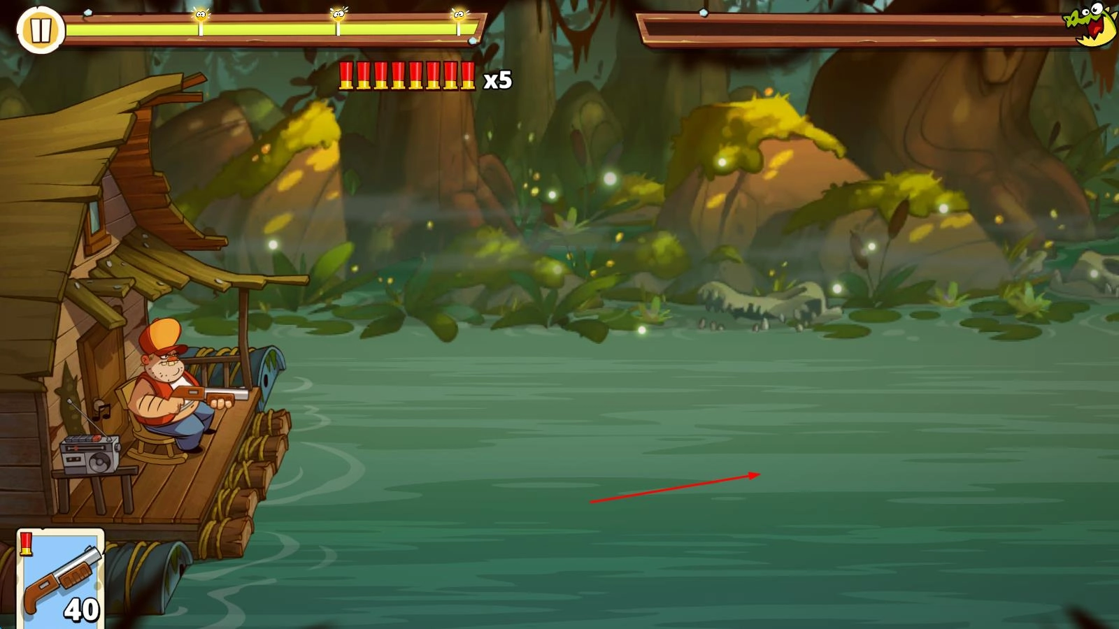 关卡应对策略:留意关卡中的怪物种类,比如遇到飞行的蚊子时,优先选用火焰喷射器;对付大型鳄鱼这类目标,则用步枪进行远程消耗;还要及时使用炸弹来清理场面,以此保障小屋的安全。