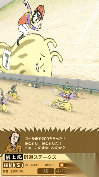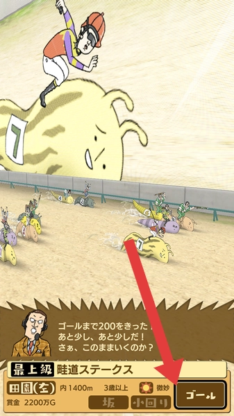 在蛞蝓之星的赛马游戏场景里,等比赛结束后,点击【ゴール】按钮,就能查看赛事结果和相关奖励了。