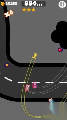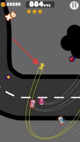 在弯道时借助漂移(黄色轨迹)来避开对手,同时穿过赛道(灰色/紫色区域),全力冲击三星评价。