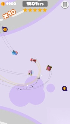 可以借助×10、×6这类道具,触发加速或者得分翻倍的效果,以此穿越黑色云团之类的障碍,从而维持领先优势。
