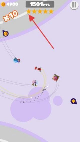 请留意屏幕上方显示的分数(例如1501pts这样的形式)和金币数量(比如4900这类数值),通过漂移操作可以积累分数,收集金币则能够提升等级。