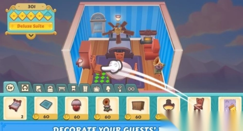 用游戏货币挑选各种风格的室内摆件,给客房空间做个性化布置,现在就动手打造专属于你的独特客房吧。
