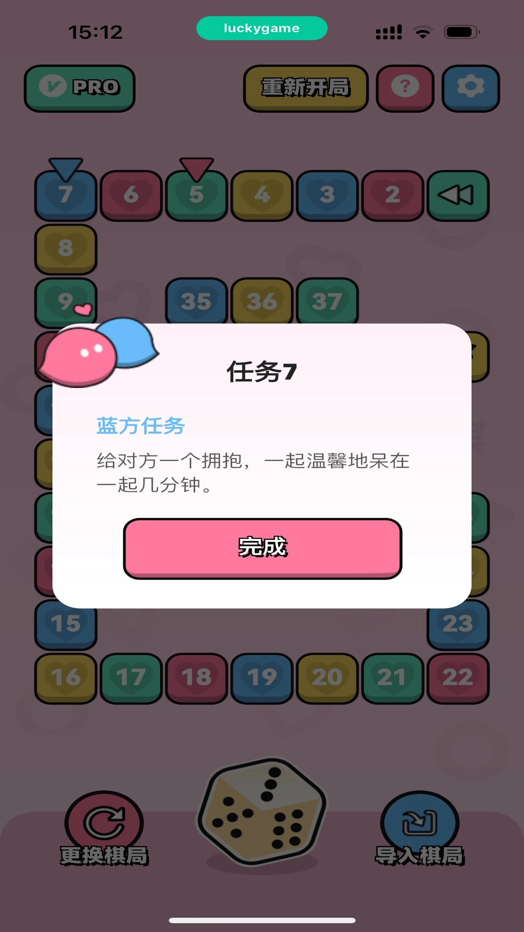 3、每个格子上都有对应的任务,不会很难为情也不会很无趣,尺度把握的很好