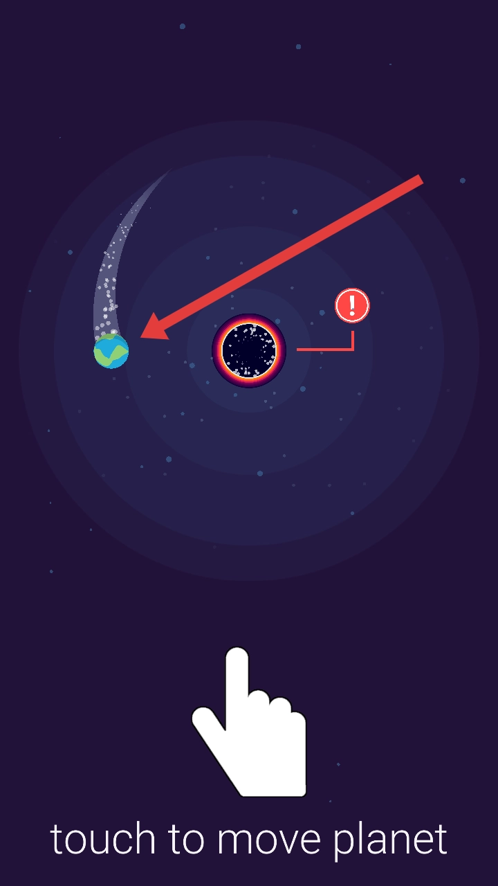 在游戏里得依照系统给出的提示来操作,通过触摸屏幕控制地球移动,避开黑洞这类危险,进而达成关卡要求。