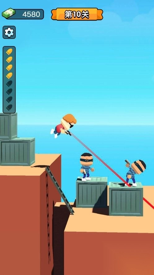 通过上下滑动来调整射击角度,再结合跳跃滞空的时机,以此完成致命一击。