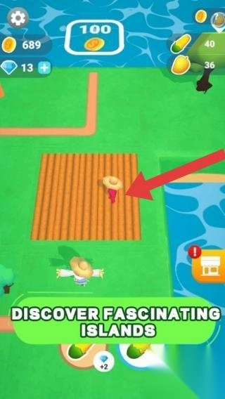 画面展现农场场景,屏幕上显示着金币、钻石等资源,同时配有“DISCOVER FASCINATING ISLANDS(探索迷人岛屿)”的玩法提示,玩家能够体验岛屿农场的经营与探索等玩法内容。