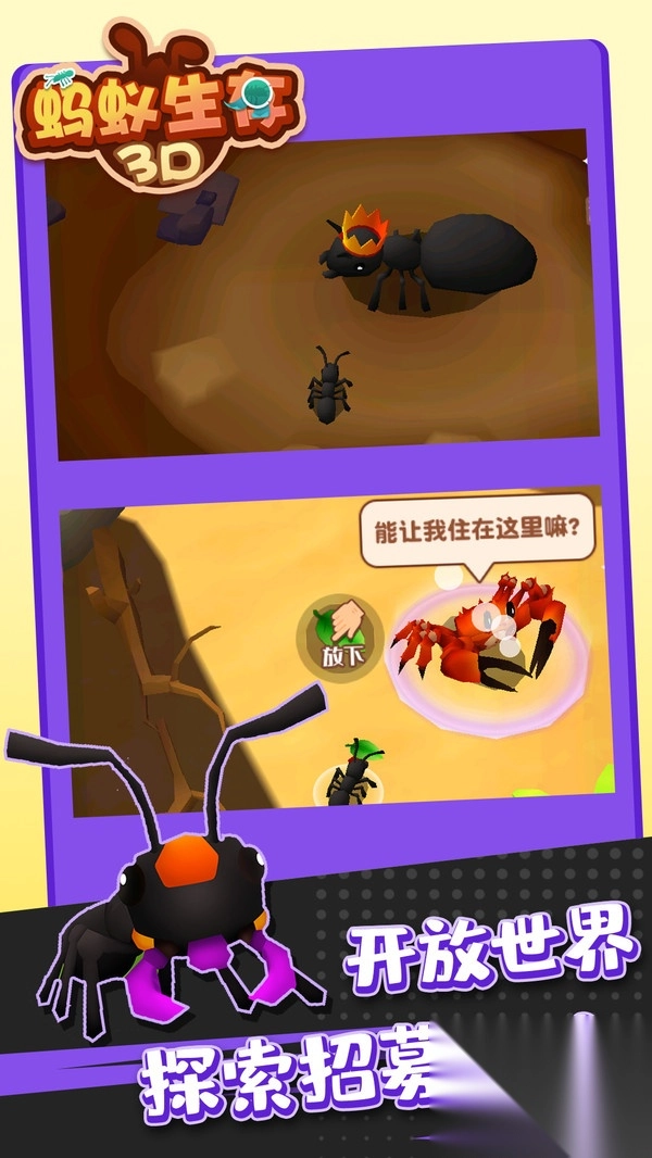 《蚂蚁生存》是一款集策略模拟与生态冒险于一体的休闲游戏。在游戏中,玩家将化身为蚁群的领袖,在微观世界里带领族群开展探索、建设与战斗活动。通过合理进行资源管理、精心制定战术规划以及推动种群发展,玩家能够亲身经历从弱小蚁穴逐步壮大为庞大帝国的成长过程。游戏采用精致写实的美术风格,构建了深度生态系统,同时结合渐进式难度设计与成就解锁机制,高度还原了蚂蚁社会的复杂结构与奇妙之处。