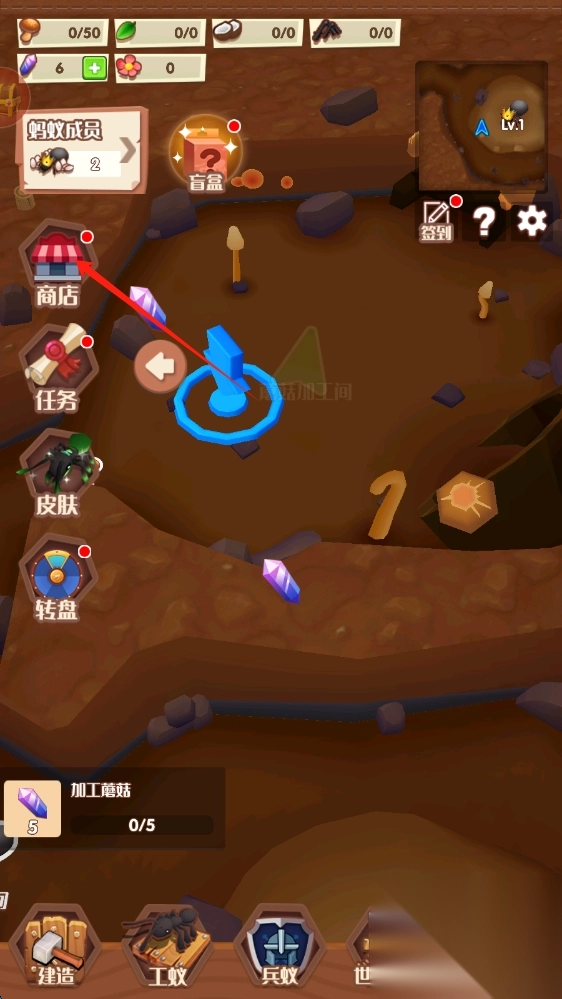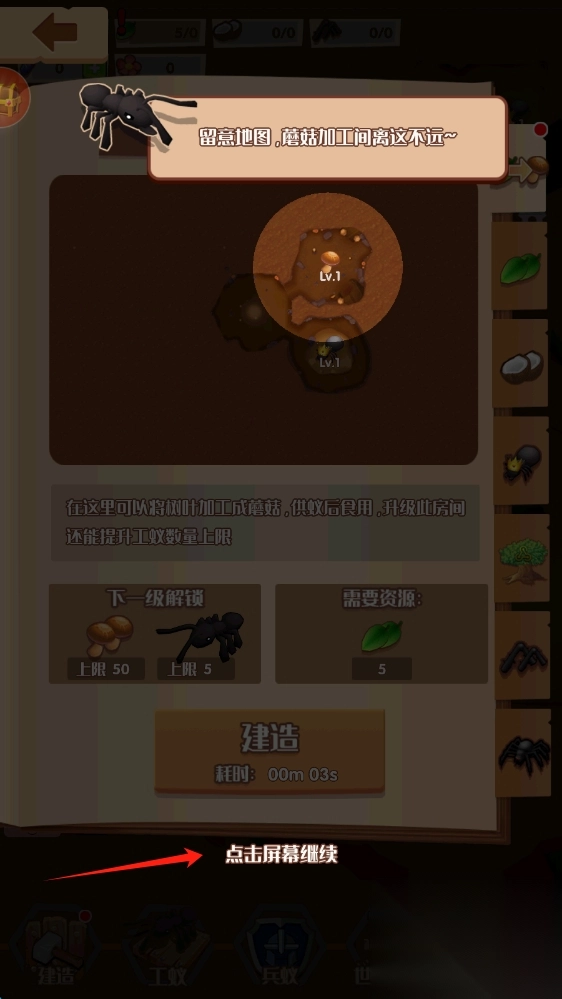 点击进入商店,通过收集特定组合的成就奖励来解锁限定剧情,例如“解锁所有基础建筑”“累计孵化1000只工蚁”。