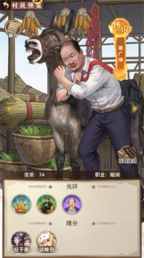 同时,强力村民不仅有着更高的资质上限,也能够拥有超强光环和多个强力挚友能够提高收益的百分比加成。这样,在资质和百分比加成双高的情况下,给强力村民投入资源所获得的回报将会远远大于普通村民,因此对于村民的选择是十分重要的。